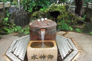 - 柄杓に水をかけ持ち手を清め、元に戻す
