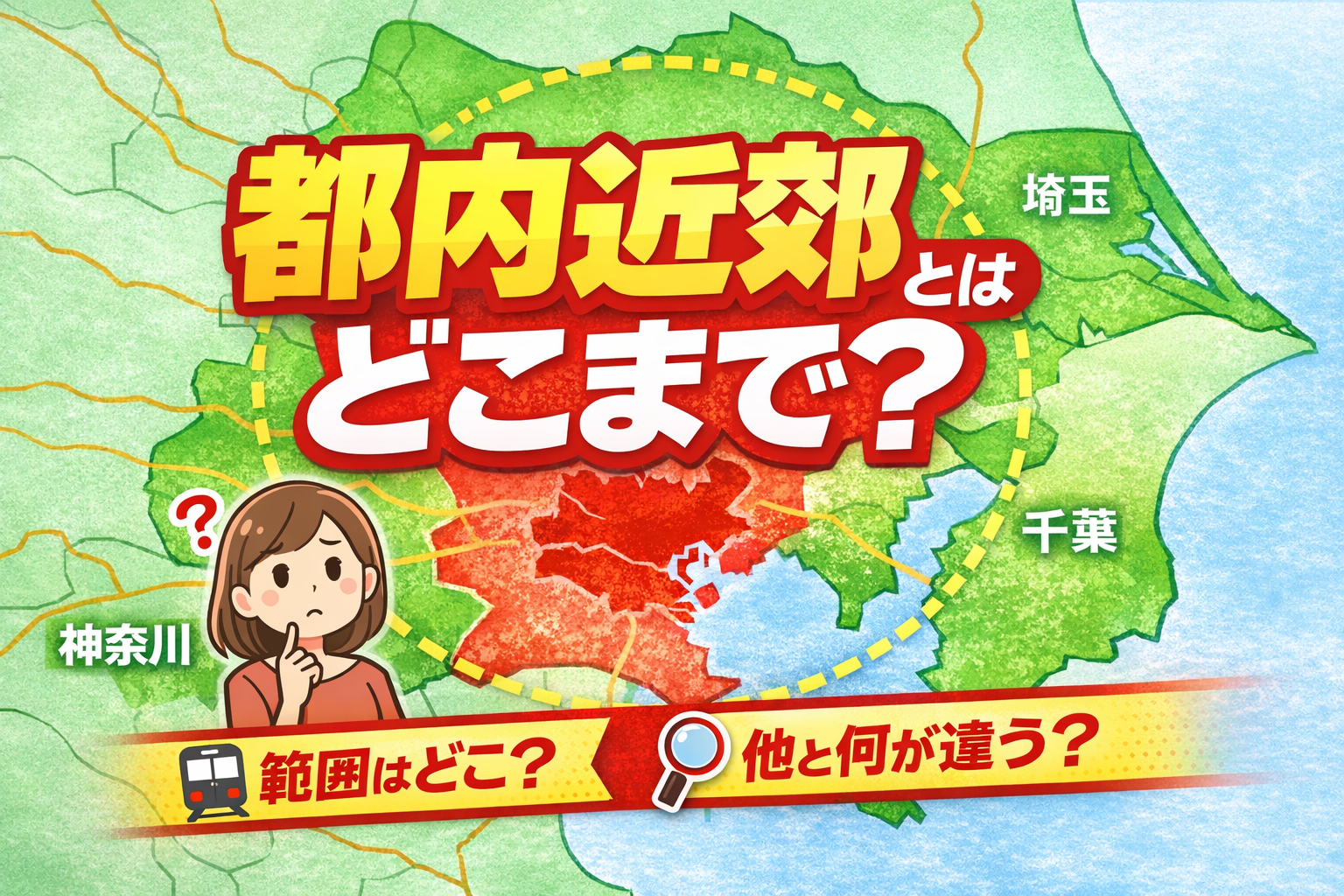 都内近郊は明確な定義がない言葉で、一般的には東京都と周辺の通勤圏エリアを指します。