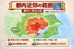 この記事では、都内近郊の目安や、東京近郊・首都圏との違いをわかりやすく解説します。
